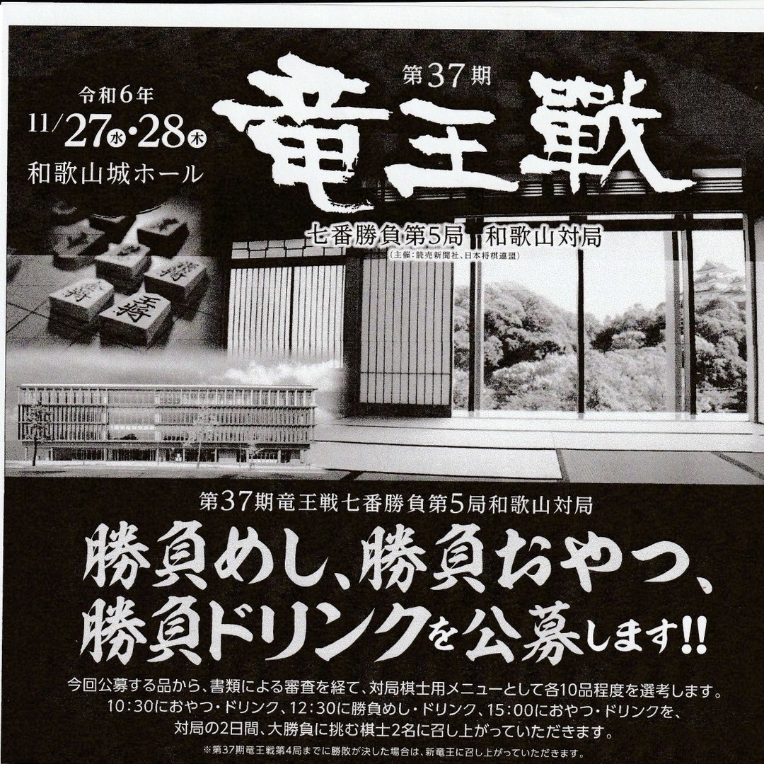 11月27・28日に和歌山城ホールで行われる、第37期竜王戦の勝負おやつ11個のうちの1つ、メニューに掲載されました。このたい焼きは近隣小学校6年生が棋士に食べてもらいたいと考えたたい焼きで最終私がアレンジして完成しました。味は2種類。どちらも地元和歌山の食材を入れたオリジナルたい焼きです。あんこに南高梅を入れた、あんこぅ梅。ホイップクリームに湯浅醬油を混ぜた、湯浅醤油あんこホイップ。当日棋士の方々がこれを選んで食べてもらえるように毎日祈ってます。?